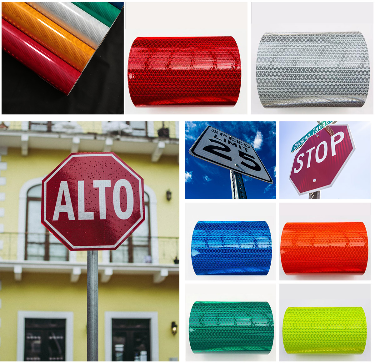 This Grade Reflective Sheeting can also be pre-coated with slant double colored strips or hazard warning shapes on the surface for finally using as barricade or hazard tape. More details pls check the overview table or Spec sheet.