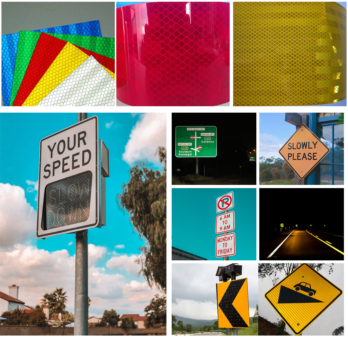 This Grade Reflective Sheeting can also be pre-coated with slant double colored strips or hazard warning shapes on the surface for finally using as barricade or hazard tape. More details pls check the overview table or Spec sheet.