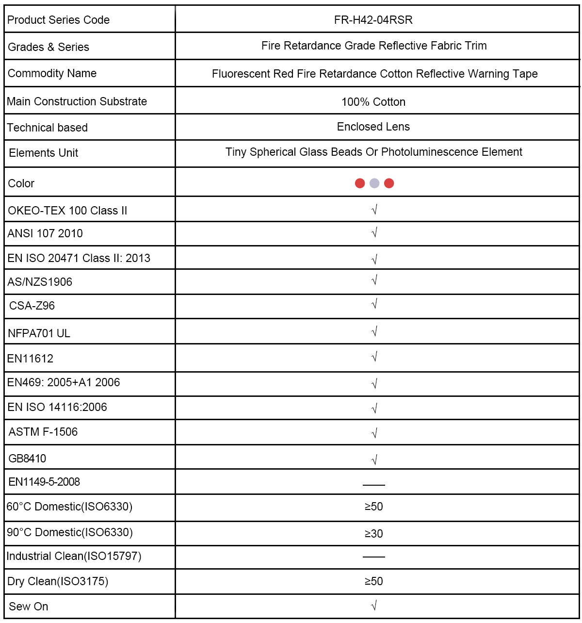 YillumaxTM Fire Retardance Grade FR-H42-04RSR series Embedded semi-enclosed glass beads type reflective warning trim designed for enhancing visibility in low light and nighttime conditions, bonded to a fabric substrate composed with wide-angle and high-refractive index retro-reflective lens of glass beads exposed structure, to improve the wearer is available at night or in adverse environments sight visibility plays a significant role.
