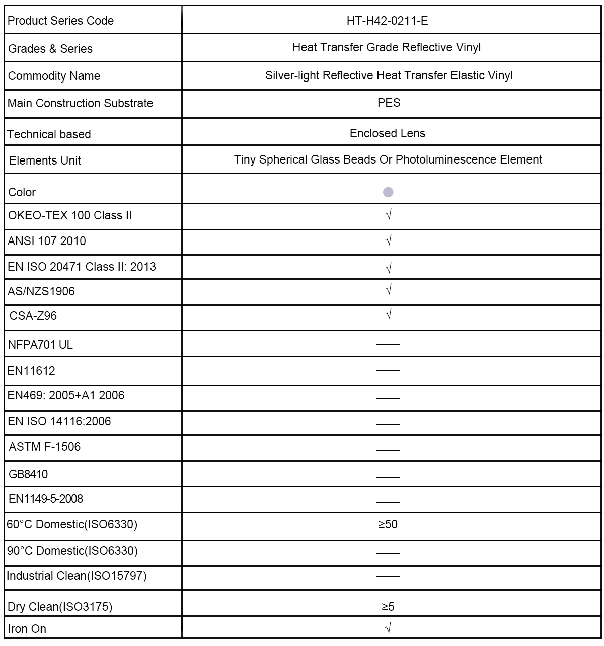 YillumaxTM Heat Transfer Grade HT-H42-0211-E series Embedded semi-enclosed glass beads type reflective heat transfer vinyl trim designed for enhancing visibility in low light and nighttime conditions, bonded to a PES substrate composed with wide-angle and high-refractive index retro-reflective lens of glass beads exposed structure, to improve the wearer is available at night or in adverse environments sight visibility plays a significant role.