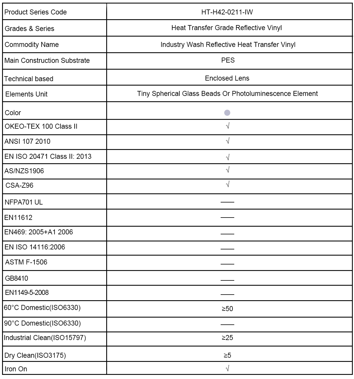 YillumaxTM Heat Transfer Grade HT-H42-0211-IW series Embedded semi-enclosed glass beads type reflective heat transfer vinyl trim designed for enhancing visibility in low light and nighttime conditions, bonded to a PES substrate composed with wide-angle and high-refractive index retro-reflective lens of glass beads exposed structure, to improve the wearer is available at night or in adverse environments sight visibility plays a significant role.