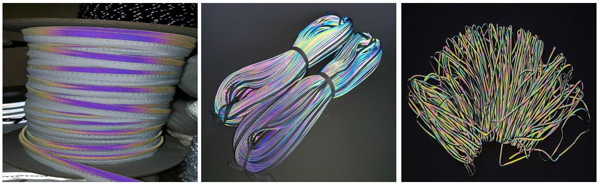 The reflective ribbon grade RP-C-03ID(05ID) series iridescent reflective piping or edging has a poly or T/C fabric backing and comes in rolls of 200 meters or 100 meters at a standard 1.3cm*1.7cm width, other widths are available upon request, in a variety of fabrics can be sewn with padding or sewn on to fabrics, extensively used in safety apparels, shoes, bags and gloves and others, these are available in a wide variety of specifications as per the exact requirements of clients. Moreover, these are quality checked on various stringent parameters to ensure their durability and quality. We supply the best qualified reflective piping consistent performance at a competitive price as always.