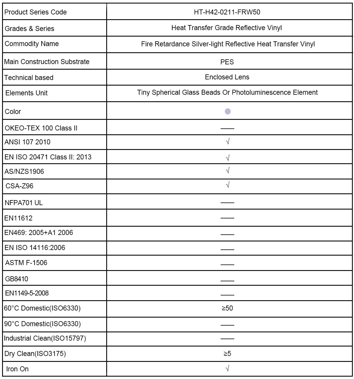 HT-H42-0211-FRW50 Fire retardance silver-light reflective heat transfer vinyl